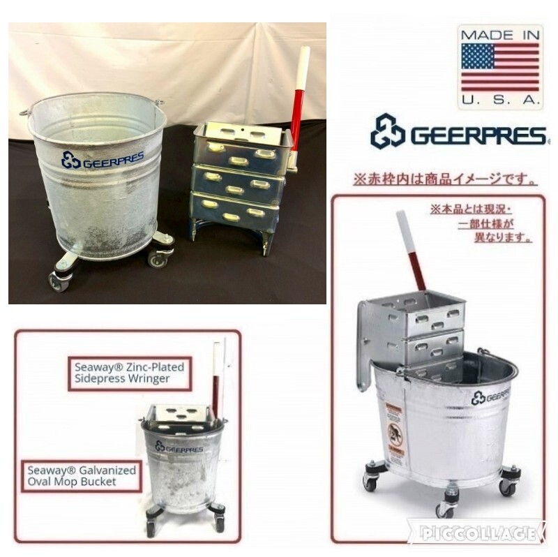 - #【アメリカ製】未使用品 GEERPRES モップ絞り器 ドーリー付モップバケツ オーバルブリキバケツ 掃除用具 米軍放出 (140) HJ17QK-W#25