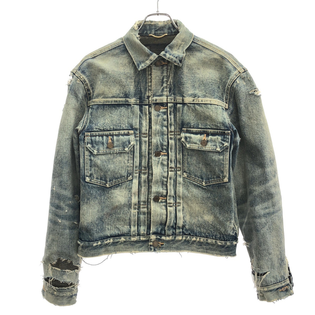 > SAINT LAURENT PARIS サンローラン パリ 21AW ダメージ加工デニムジャケット 589825 インディゴブルー XS ITZZHMEHR9M8