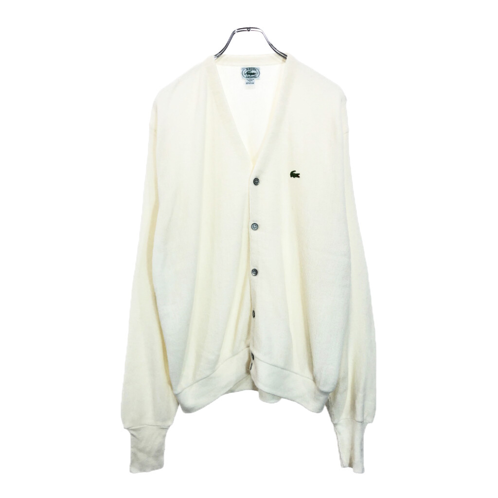 > 80年代 USA製 IZOD LACOSTE アイゾッド ラコステ アクリルニット カーディガン アイボリー(メンズ L)中古 古着 V5603