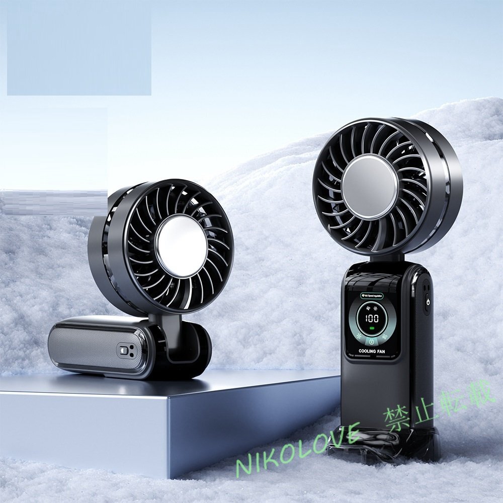 > 扇風機冷風機ハンディファン冷却プレート付き手持ち扇風機首掛け 強力瞬間冷却 USB小型 5段階風量 角度調整 携帯扇風機 熱中症対策ブラック