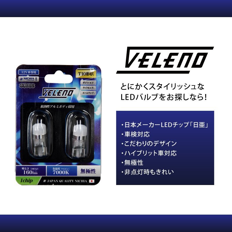 > T10 LED 160lm ポジションランプ 日亜チップ 1chip VELENO 純白 純正同様の配光 ハイブリッド車対応 2球セット 車検対応 送料無料 b003