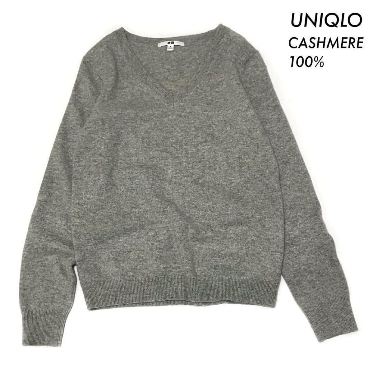 - 【送料無料】UNIQLO ユニクロ★カシミヤ100% 長袖ニット セーター Vネック グレー Sサイズ レディース