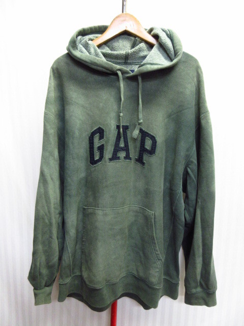 > GAP ギャップ 90sヴィンテージ タイダイ柄スウェットパーカー メンズXL LL 緑系 ビッグロゴ フーディー フード付きジャージトップ10212