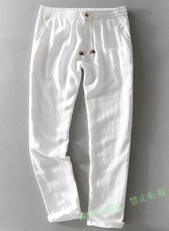 > ☆新品春夏 パンツ メンズ リネンパンツ 麻 無地 スラックス チノパン ストレート ロングパンツ イージー パンツ 上品 紳士 ホワイト