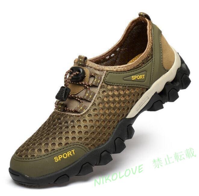 > ☆新品ウォーターシューズ メンズ スニーカー 水陸両用 アクアシューズ マリンシューズ メッシュ 釣り 靴 グリーン 24.5cm~28cm