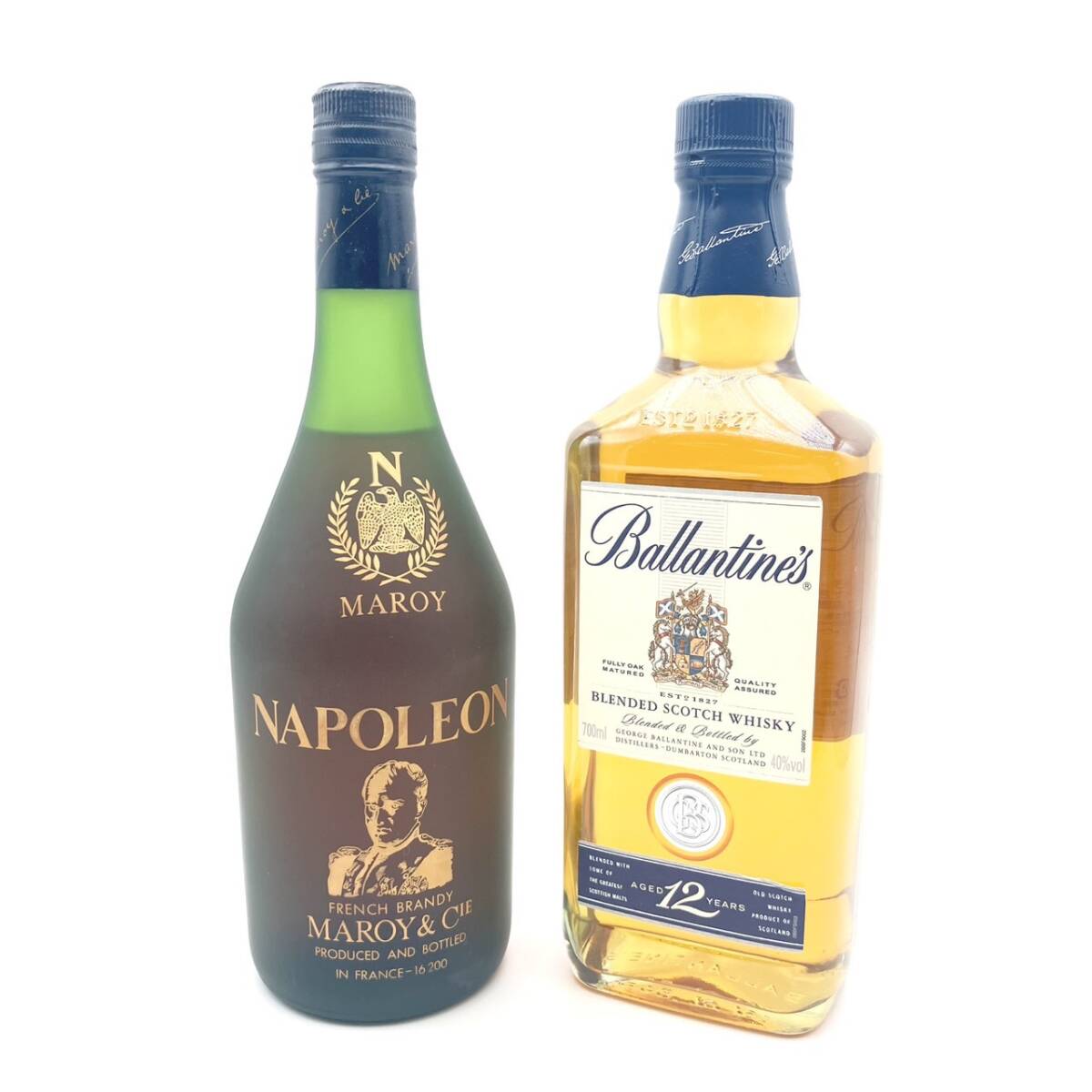 - 25仙/A011525-1/WM3000/G112-124/酒2本まとめ【幕張】Ballantines. BLENDED AGED 12 YEARS /NAPOLEON FRENCH BRANDY MAROY & CIE