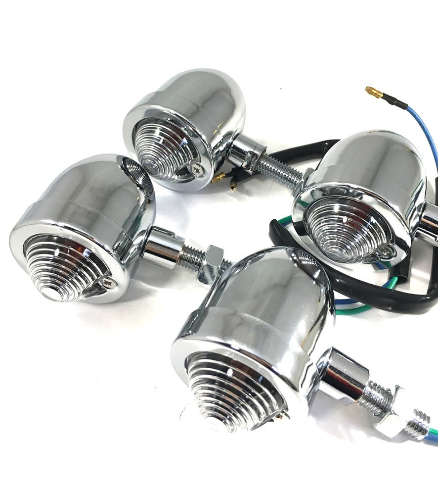 - 砲弾型 12V ブレットウインカー 4個 セット 汎用品 シルバーメッキ クリアーレンズ アメリカン ハーレー ボバー チョッパー