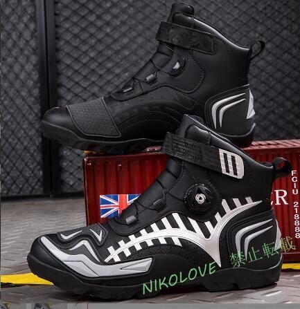 > ☆新品バイクブーツ オートバイ靴 エンジニア シューズ レーシングブーツ ライディングブーツ 防雨 通気性 黒と白 耐磨耗性 滑り止め