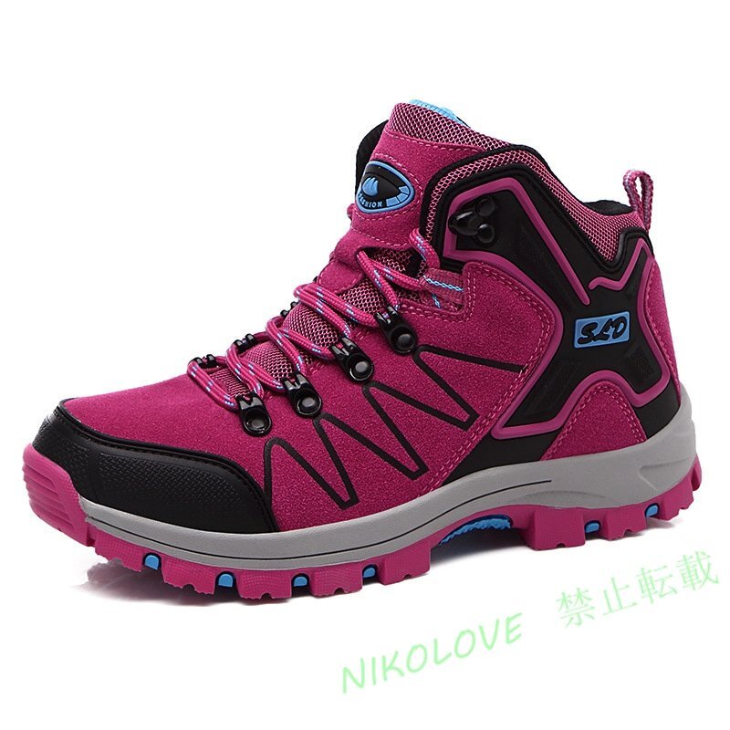 - トレッキングシューズ メンズ レディース 男女兼用 ハイカットアウトドアシューズ ハイキングシューズ登山靴防滑耐磨22.5~27.5cm メイル紅