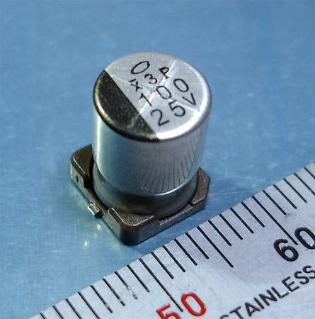 ■ニチコン UX[UUX1E101MNR1GS] チップ電解コンデンサ(25V/100μF/105℃)