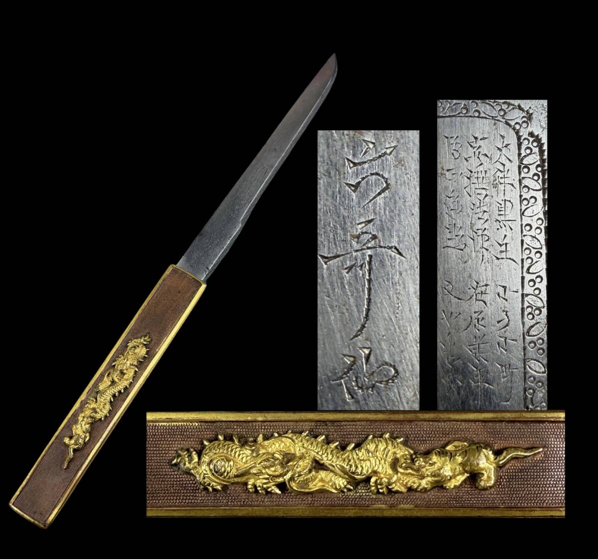 > 【偲】六五川仙作 江戸時代 鍔 鐔 小刀 小柄 刀装具 骨董 日本刀/刀装具/武具/骨董/古美術/美術品/時代物 r-1005