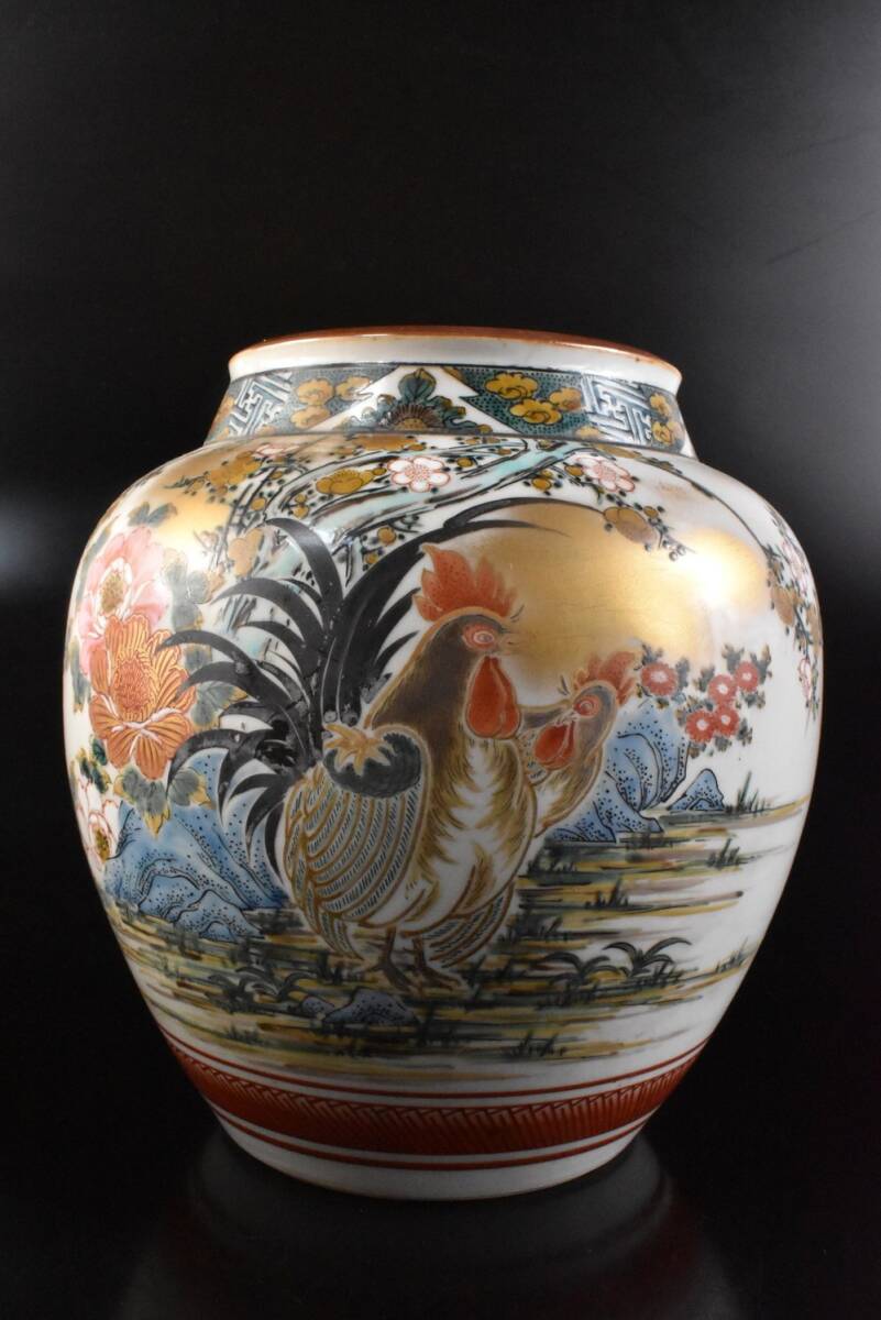 > 【雲】某有名コレクター買取品 九谷 色絵金彩鶏絵付 花瓶 在銘 古美術品(花器花入) F8860