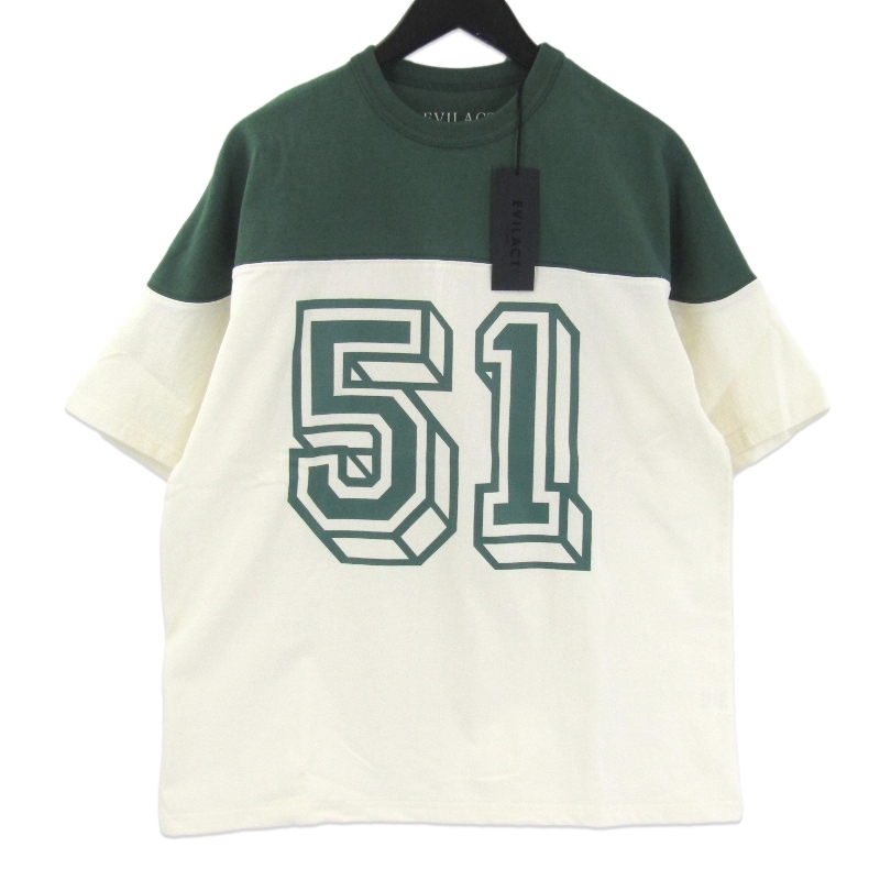 - 未使用 EVILACT イーブルアクト 51 HOCKEY SS EA25-ACT1-T08 半袖Tシャツ プリント グリーン オフホワイト M タグ付き 65008926