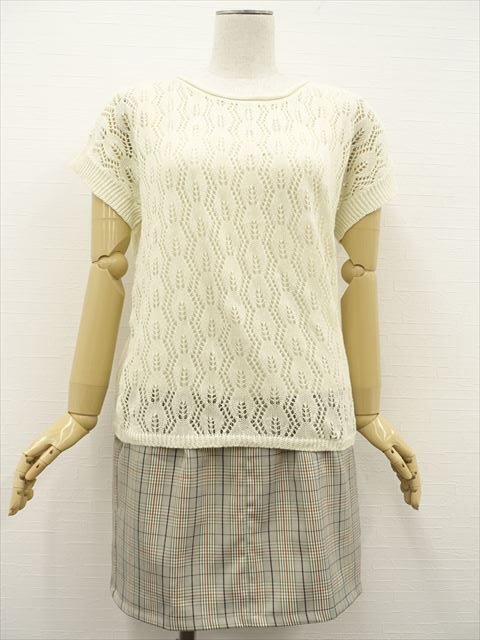 > 新品タグ付 Ray Cassin等 セーター+キャミソール+スカート コーデ上下3点セット M相当 アイボリー/白/灰×茶×黒 チェック きれいめ系 20代