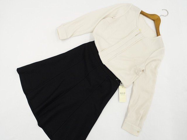> 美品 GU&MEO 長袖ブラウス+ひざ丈フレアスカート コーディネート2点セット S相当 アイボリー/ブラック オフィス・フェミニン系 30代-40代