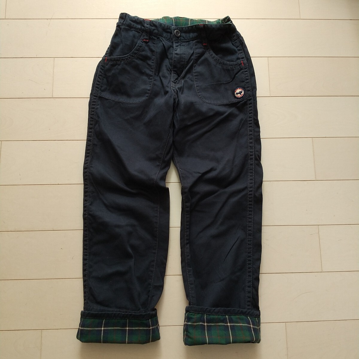 - 140 ミキハウスブラックベア 折り返しグリーンチェック カラーパンツ ネイビー