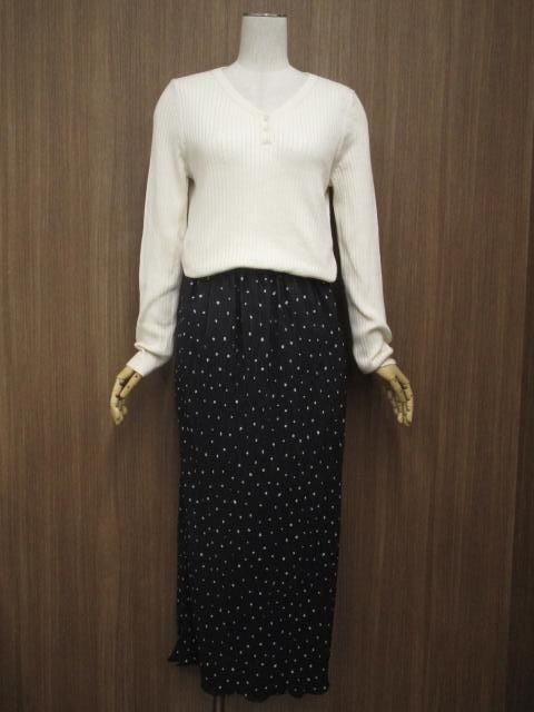 > 美品 GU等 長袖ニットカットソー+ロングストレートスカート コーデ2点セット M相当 白系/黒地 水玉 カジュアル・シンプル系 20代・30代