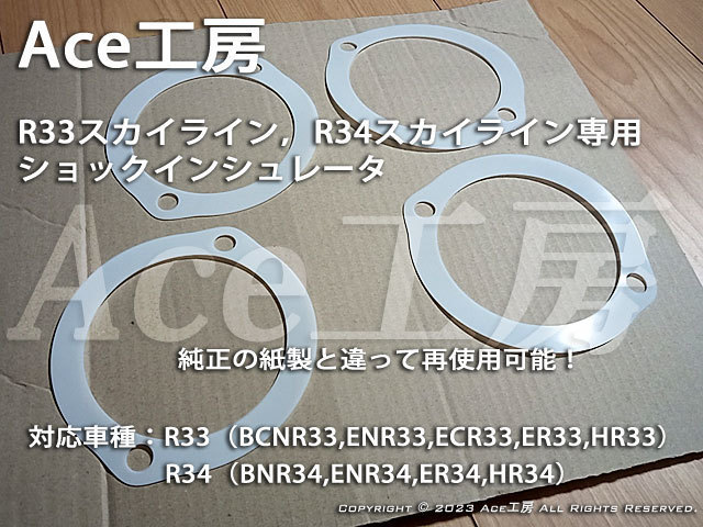> R33・R34 ショック インシュレータ 再使用可能 ガスケット 車高調 パッキン スペーサ― BCNR33 BNR34 ECR33 ER34 ER33 ENR34 HR34 Ace工房