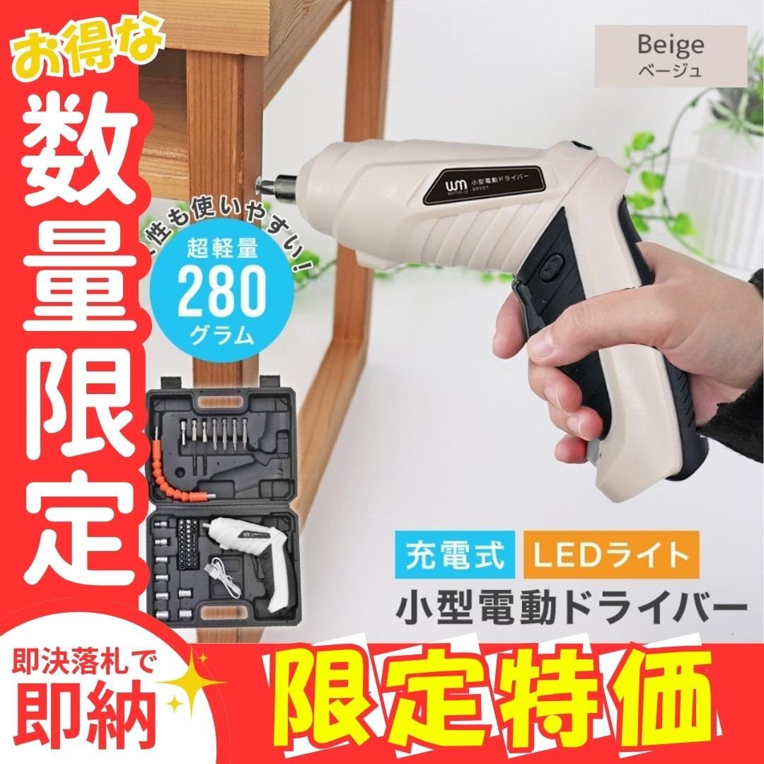 - 限定セール【ベージュ】電動ドライバー 小型 セット 充電式 ビット 超軽量 コードレス 電動 ドリルドライバー ドライバー 収納ケース付 DIY