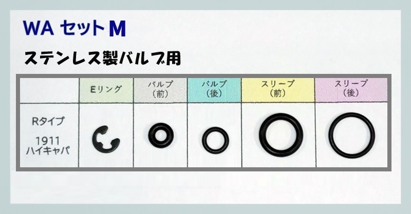 - WA セットM 1911 ハイキャパ Rタイプ ステンレス/スチール製バルブ 放出バルブ用Oリング ウエスタンアームズ ガスブロ ガスガン