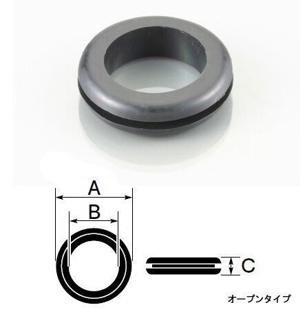 | 商品内容 | ■オープンタイプはパネルやシャーシ等を貫通する電線を保護することが出来ます。クローズドタイプは開けてしまった穴を簡易的に塞ぐことを目的としています(※オイル漏れ等を防ぐ為の物ではありません、ご注意下さい)。 ○材質:PVC(耐熱温度:-20℃~80℃) ○A:Φ23.7 B:Φ15.5 C:6.1(厚み) ○適合下穴:Φ20 適合板厚:1.5~2mm ○1ヶ入り ブラック ※取り付け穴加工の際は下穴のサイズ、板厚をよく確認した上で加工して下さい。 |