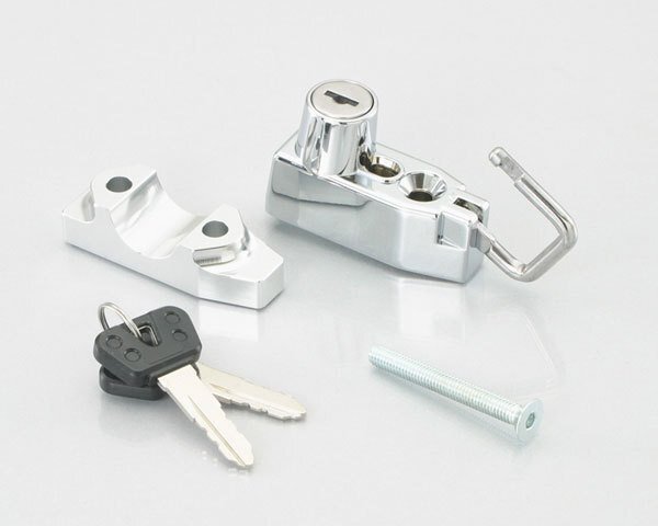 | 商品内容 | ■純正マスターシリンダーホルダーのスペースにヘルメットホルダーを増設し、利便性をアップ。 ■ホルダーカラー : メッキ ■ホルダー部 : アルミ削り出し仕上げ ■キー 2ヶ付属 ■JANコード : 4990852086191 |