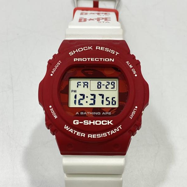 - 【中古】G-SHOCK A BATHING APE レッド/ホワイトDW-5750E ジーショック[240024524191]