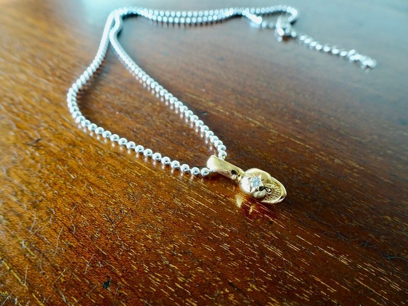 - 仁尾彫金『一つ目2.3mmダイヤ、ゴールド、ラッキースカルペンダント』ハンドメイド265b