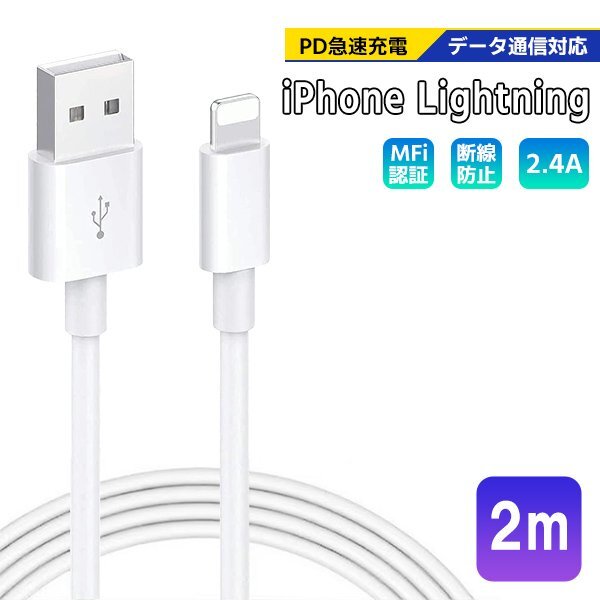 > [3]USB Lightning ケーブル 2m 1本 Type-A to Lightning 急速充電 データ通信 データ転送 スマホ iPhone 充電コード ライトニングケーブル