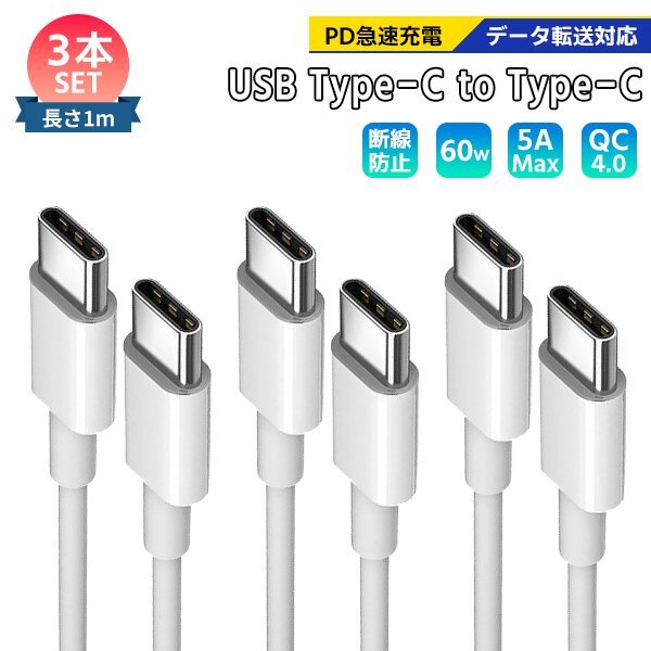 - [1]USB Type-C to C ケーブル 1m 3本セット PD急速充電 データ転送対応 スマホ iPhone15 充電コード 高速充電 タブレッドゲーム機スイッチ