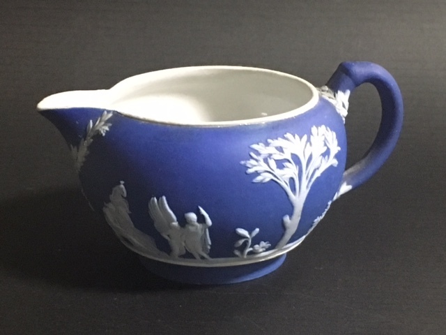 - ◎1900年代 ウェッジウッド 青色を被せた白のジャスパー 可愛い小型クリーマー 内側釉薬かけ◎e8