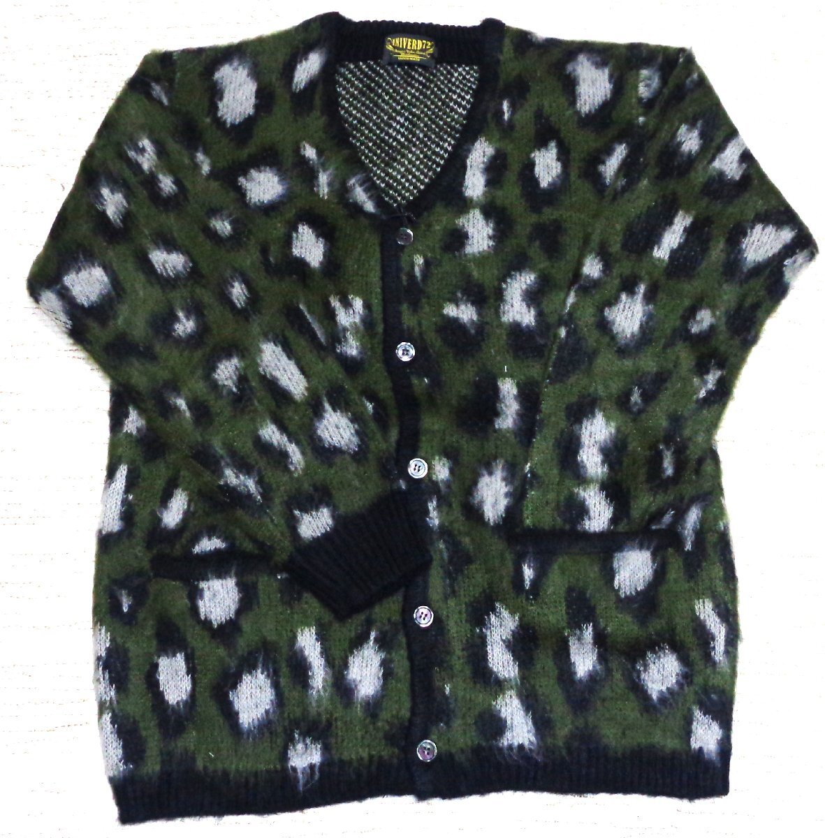 - 送料無料 UNIVERD72 ユニバード72 モヘアタッチ 起毛レオパード柄 カーディガン ニット オリーブ M 22329 HOUSTON メンズ 人気 おすすめ