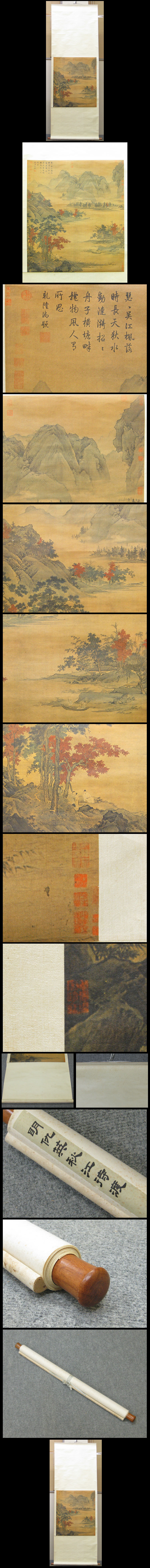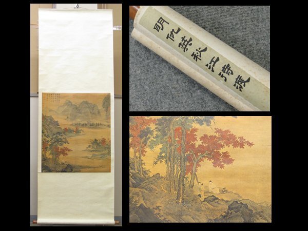 - 【心庵】中国掛軸 明 仇英「秋江待渡」/工芸印刷 A1239