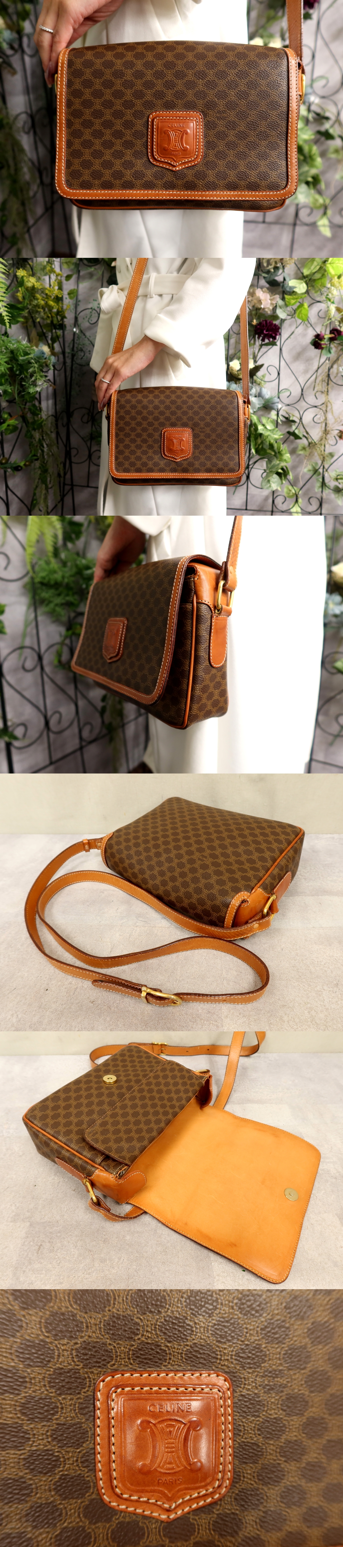 > 超美品●CELINE セリーヌ●マカダム●ロゴ型押し●PVC カーフ レザー 本革●ショルダー バッグ●ブラウン キャメル●ヴィンテージ●Js61683