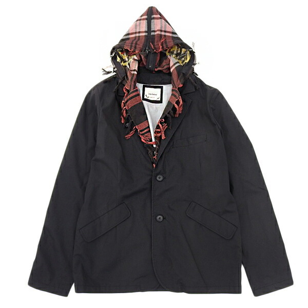 > ウィズ WHIZ Limited チェック柄 フード付き ジャケット アウター メンズ ブラック×レッド sizeL 裏原 [Y03248]