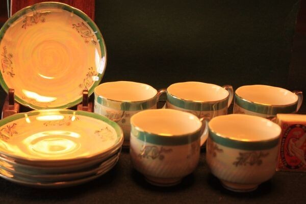> 【新品未使用】★美品 贈答品『ヤマカクチャイナ レトロカップ&ソーサー5客セット』★検:(昭和/アンティーク/ビンテージ/当時物)70227B