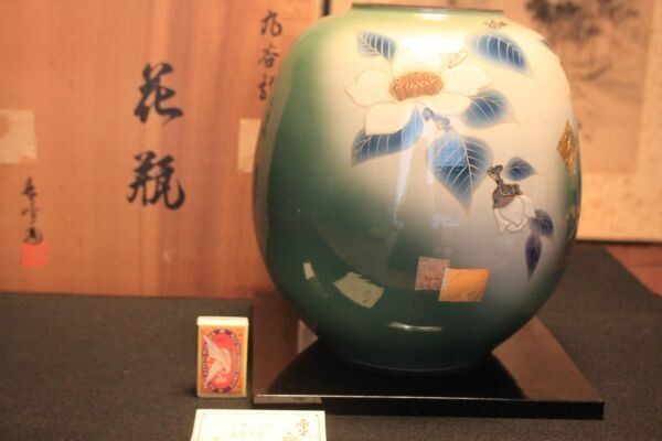 > 【新品未使用】★美品 伝統工芸『九谷焼 青峰 花瓶』共箱あり★検:(初だし/陶磁器/モダン/レトロ/花器/華道/生け花/床の間/当時物)60530A