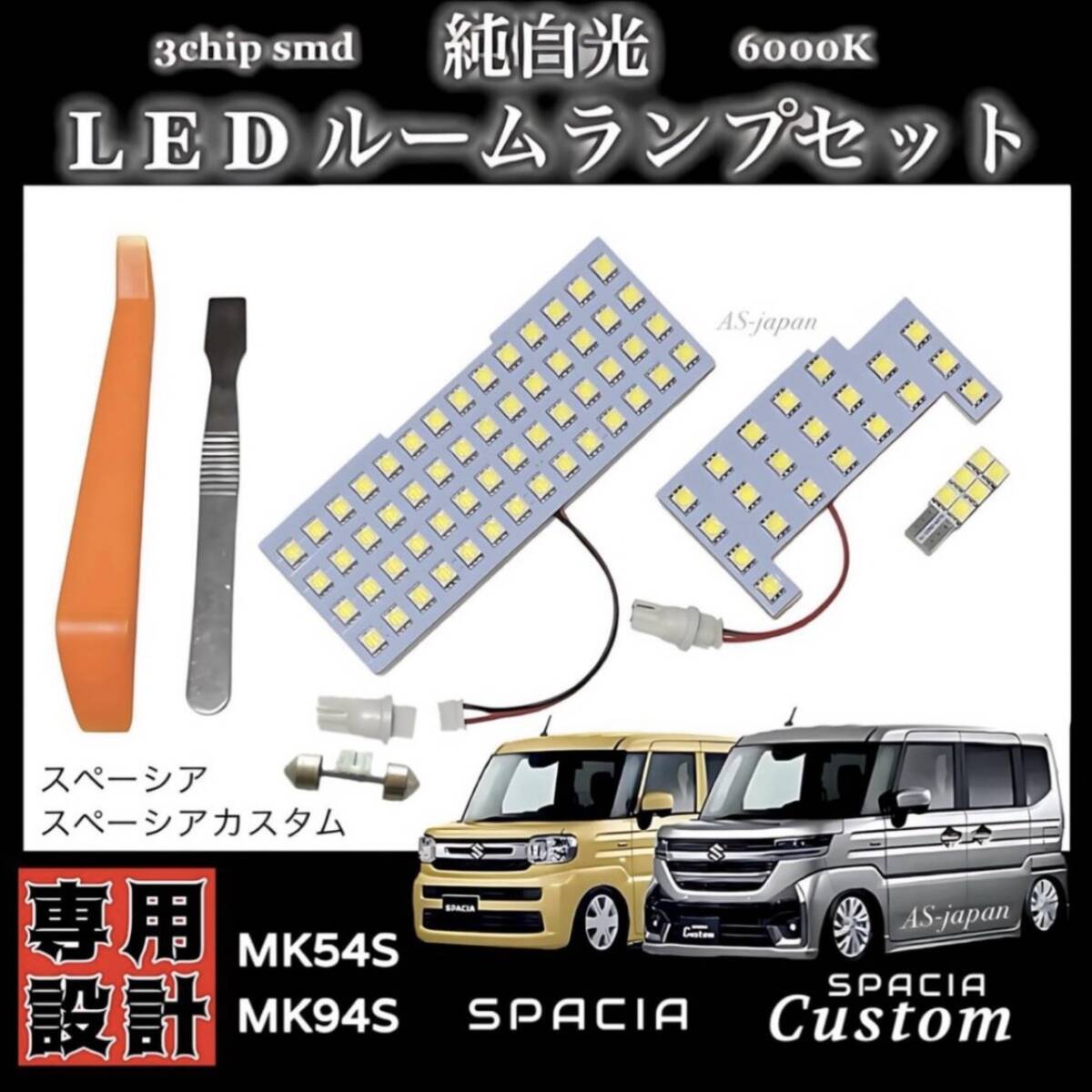 - スペーシア スペーシアカスタム MK54S MK94S LED ルームランプ 高輝度3チップSMD 純白光 ドレスアップ カスタム パーツ 令和5年11月~
