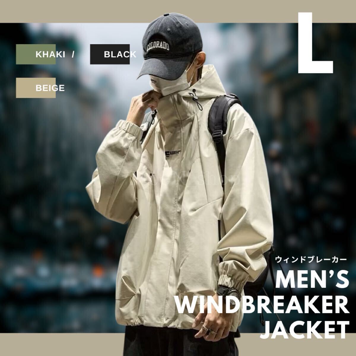 - 《ベージュ・Lサイズ》ウィンドブレーカー ジャケット 軽量 梅雨 マウンテンパーカー パーカー フード付き ジャンパー ブルゾン