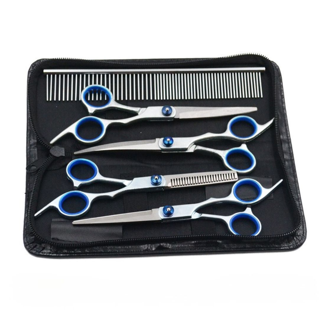 > トリミング シザー カット セット 美容 理容 ペット 犬 猫 セルフカット トリマー スキバサミ カーブ コーム はさみ お手入れ 6点セット