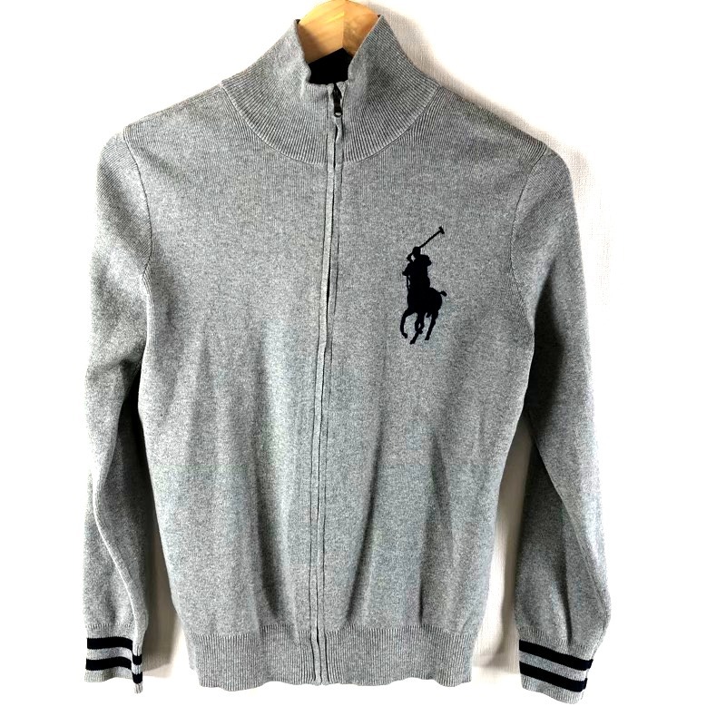 > ポロラルフローレン Polo Ralph Lauren パーカー 胸元ワンポイント 袖ボーダー 綿100% グレー Lサイズ 927057
