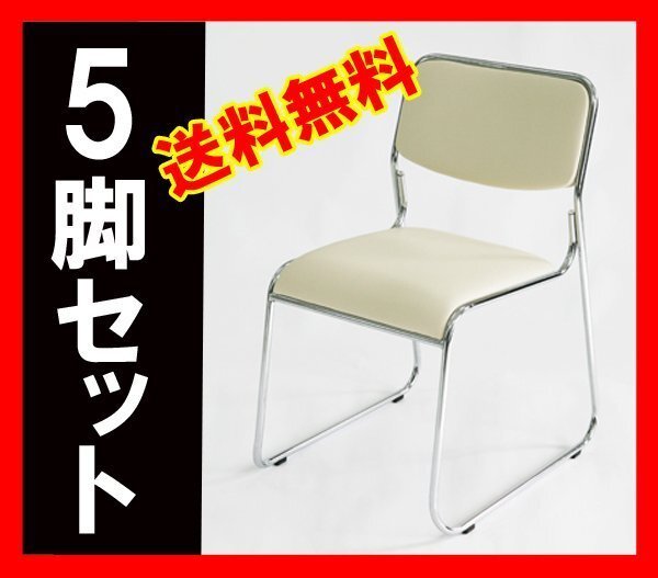 > 送料無料 新品 5脚セット ミーティングチェア 会議イス 会議椅子 スタッキングチェア パイプチェア パイプイス パイプ椅子 ベージュ