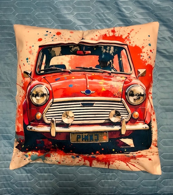 - ローバー クラミニ 赤MINI ロゴ 特大サイズクッション お部屋に、後部席に! 日本全国送料サービス クーパー モーリス JCW