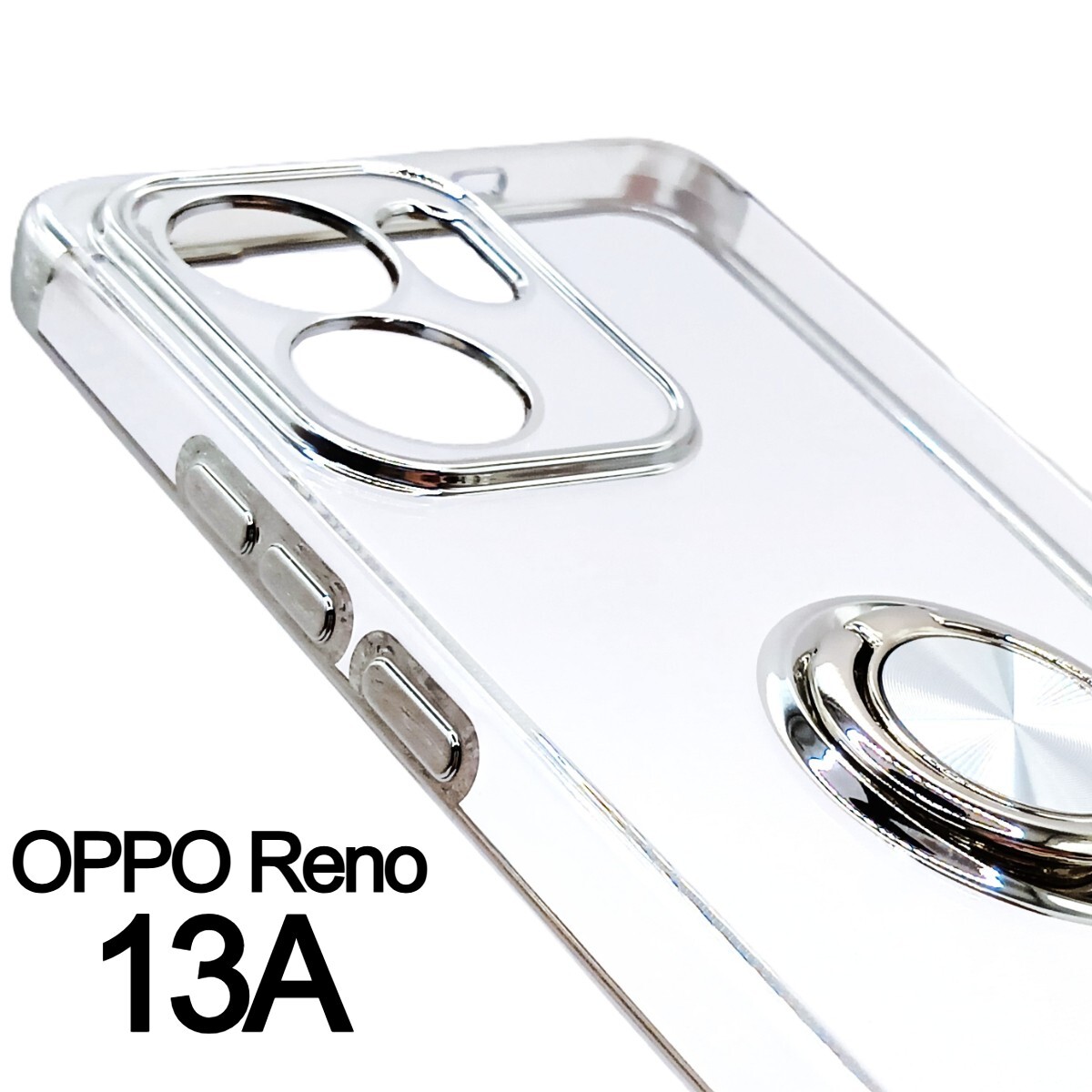 > OPPO Reno 13A スケルトン リング スマホケース シルバー(ゆうパケ)