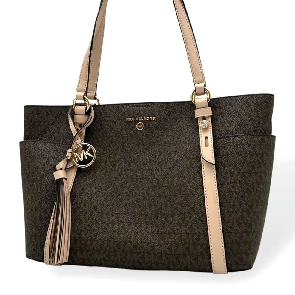 - 【大人気】MICHAEL KORS マイケルコース トートバッグ PVCレザー 自立 美品 ブラウン 肩掛けOK タッセル付き A4収納可能 近年