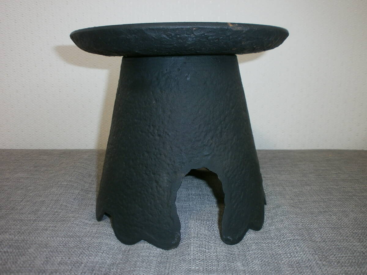- 古い池坊 御玄猪 花器 花瓶 花生 華道 いけばな 鉄製 三つ足 薄端 うすばたIkebana