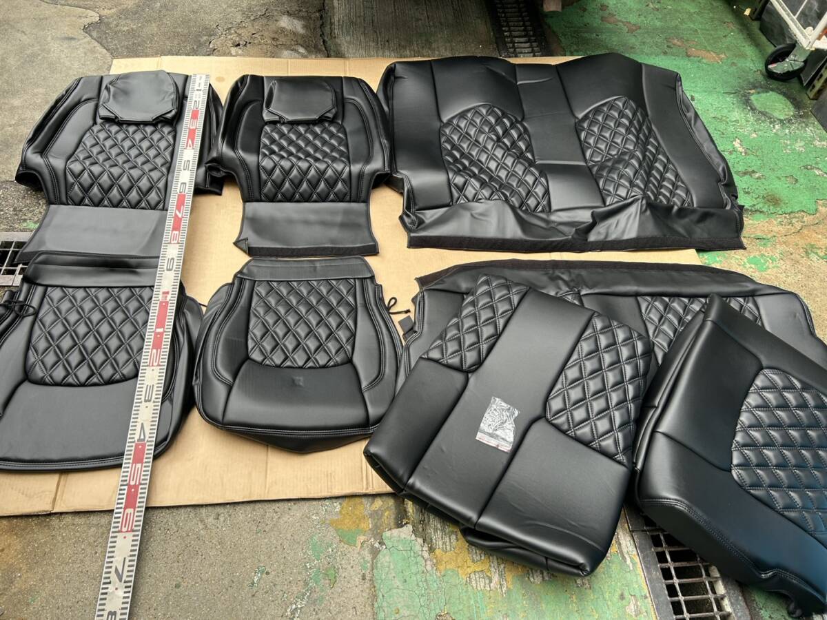 > X362/未使用 ハイエース シートカバー 200系 PVCレザー ダイヤカット ブラック FT-050-N 10pcsセット