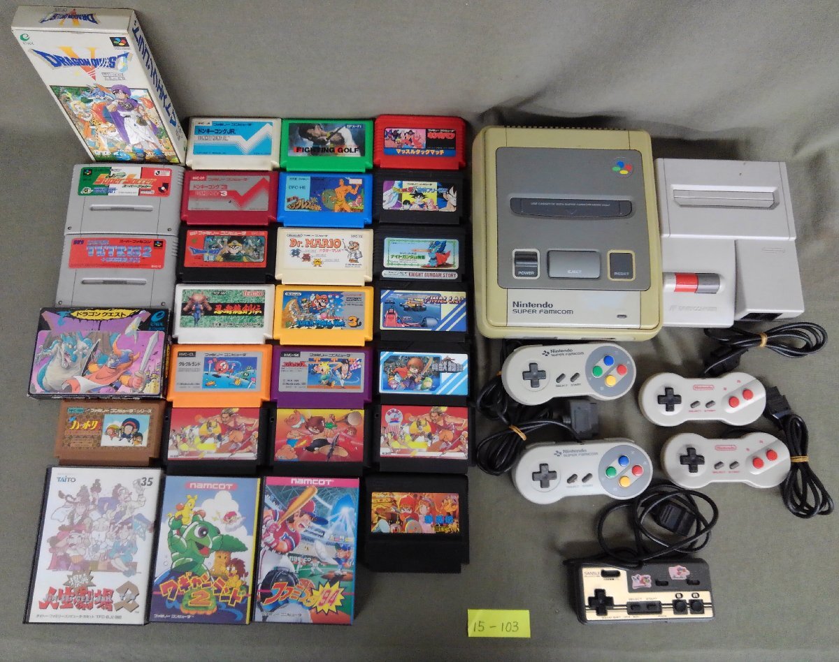- ★15―103★ゲーム機 スーファミ/ニューファミコン/ドラゴンクエスト 箱 説明書有 等 動作品33点動作不明1点まとめ レア レトロ[100