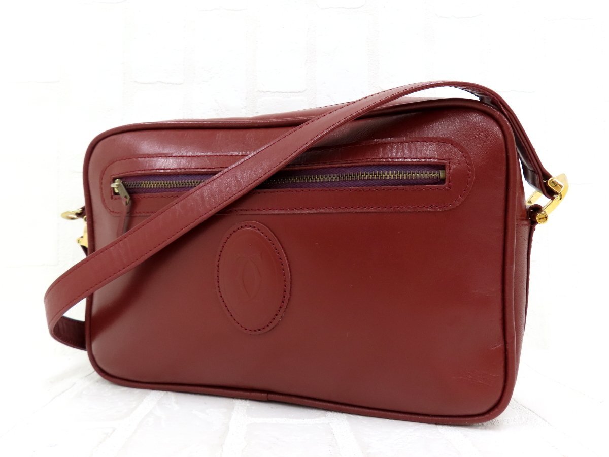 > ◆美品◆Cartier カルティエ◆マスト◆カーフ レザー 本革◆ショルダー バッグ◆ボルドー ゴールド金具◆ロゴ型押し◆斜め掛け◆A13871