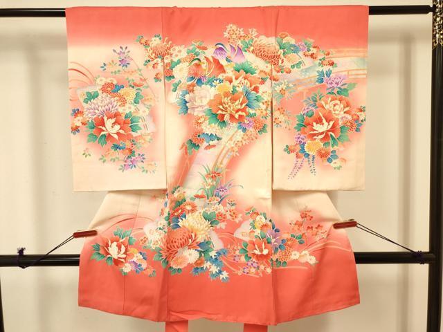 - 平和屋着物[]お宮参り 女の子 祝着 産着 初着 のしめ 駒刺繍 鴛鴦 渡橋扇面牡丹花文 暈し染め 金彩 逸品 DAAR6218ma